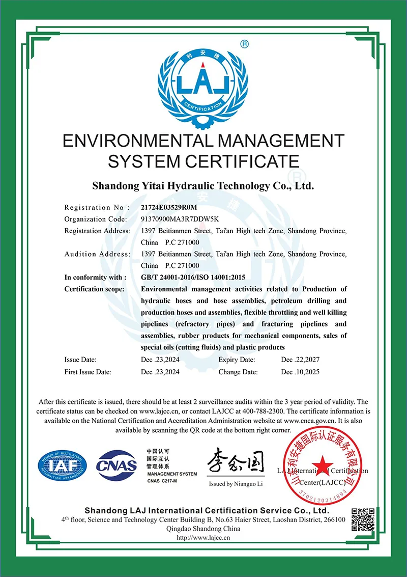 Certification ng Environmental Management System (naaayon sa GB/T24001-2016 ISO14001: 2015)