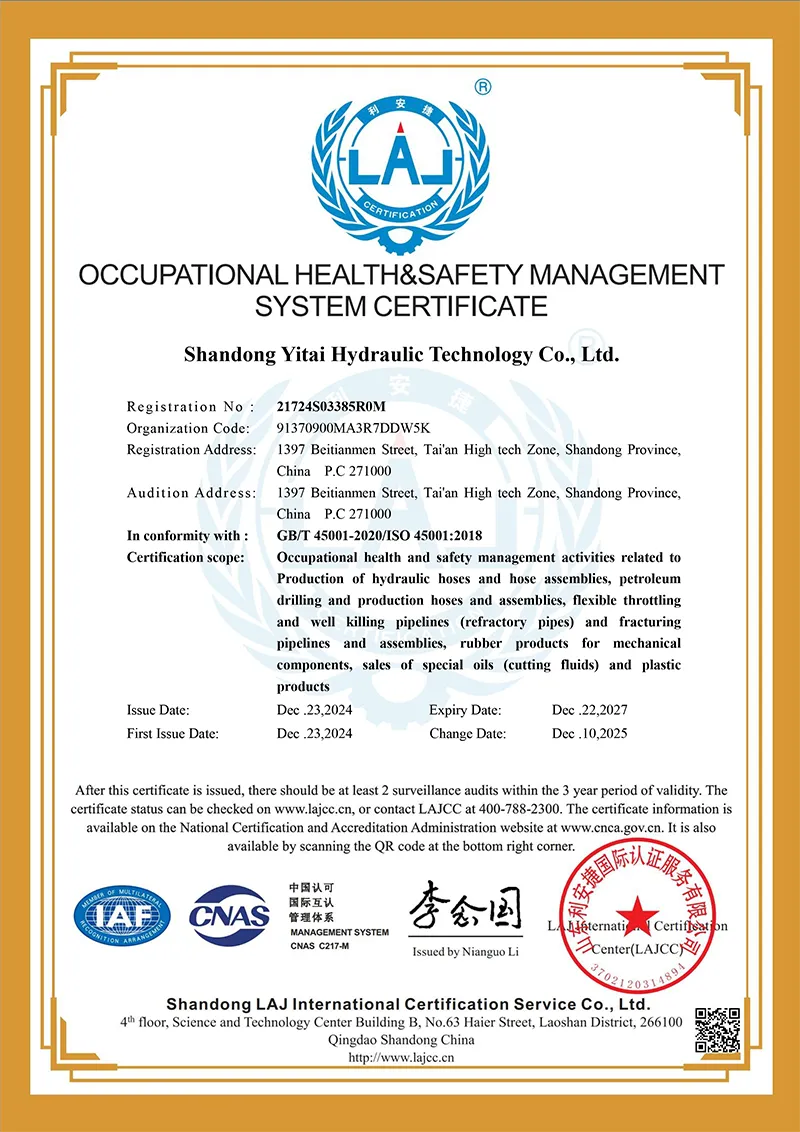 Sertipikasyon ng Sistema ng Pamamahala sa Kalusugan at Kaligtasan sa Trabaho (naaayon sa GB/T45001-2020 ISO45001: 2018)