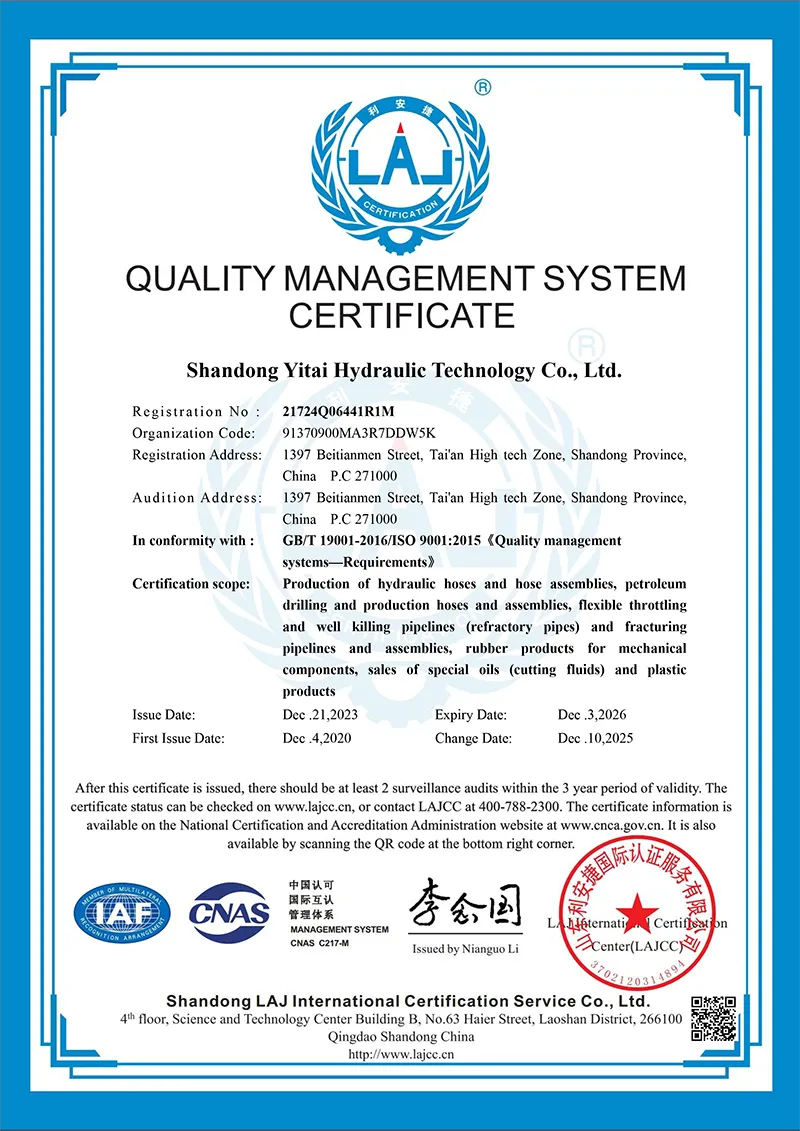 Quality Management System Certification (sumusunod sa GB/T19001-2016 ISO9001: 2015)