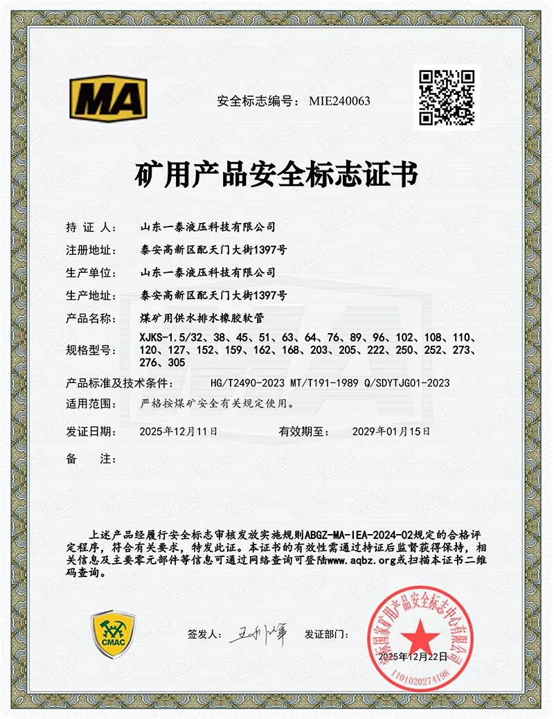 Sertipiko ng Marka sa Kaligtasan ng Produkto sa Pagmimina ng Coal Safety Mark.