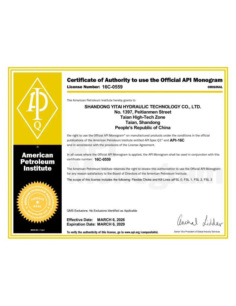Sertipikasyon ng API SPEC 16C